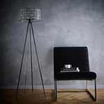 Elevate your space with this Matt Black Modern Floor Lamp, a bold blend of contemporary design and timeless elegance. Standing at 151cm tall, this tripod lamp is perfect for the corners of a room that need a touch of ambient charm. The drum shaped shade, crafted from clear acrylic glass panels, creates a captivating mosaic effect when lit casting a warm, patterned glow that adds depth and character to any room. The matt black finish on the sturdy metal base adds a refined, minimalist touch that complements modern, industrial, or transitional décor.