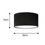Black Cotton Modern Easy Fit Round Drum Lampshade with White Diffuser 30cm