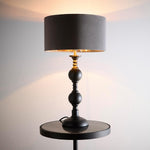 Britalia BRLCHURCHGATE/GRY Black Metal Modern Candlestick Table Lamp with Grey Velvet Drum Shade with Gold Inner - 46cm Height  Elevate your interior with the timeless elegance with this Grey Table...