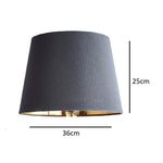 Britalia BRL14VELVET/GREY Grey Velvet and Gold Inner Modern Easy Fit Tapered Drum Lampshade - 36cm Diameter  This modern Grey velvet fabric tapered drum lampshade brings a luxury feel to any...