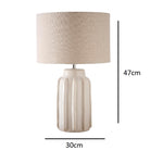 Cream Modern Ribbed Ceramic Table Lamp with Textured Beige Drum Lampshade 47cm