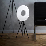 Britalia BRLRILEY/TL LED Black and White Modern Tripod Table Lamp with Sculptural Ring Shade - 80cm Height  Elevate your interior with the striking a bold blend of sculptural form and...