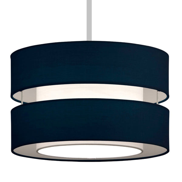 Britalia Navy Blue Cotton Fabric Double Layer Retro Easy Fit Drum Lampshade - 30cm Diameter  This Contemporary navy blue fabric dual banded lampshade is not only stylish but also very practical....
