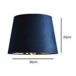 Britalia BRL14VELVET/NAV Navy Blue Velvet and Gold Inner Modern Easy Fit Tapered Drum Lampshade - 36cm Diameter  This modern Navy Blue velvet fabric tapered drum lampshade brings a luxury feel...