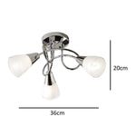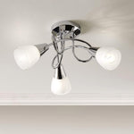 Britalia BRLDIONECHR/3LT Polished Chrome Swirl with Opal Shades Modern 3 Lamp Semi Flush Ceiling Light - 36cm Length  Elevate your interior with this sleek and contemporary 3-light ceiling fitting. Featuring...