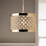 Britalia Polished Gold Metal & Acrylic Beads Modern Easy Fit Drum Lampshade - 26cm Diameter  This polshed gold non electric pendant is stunning and will add that luxury feel to any...