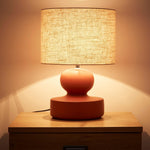 Britalia BRLLIARED/TLWS Red Ceramic Sculpture Modern Table Lamp with Beige Linen Shade - 41cm Height  This Modern Sculpture table lamp with Textured Beige Drum Lampshade adds a touch of elegance...