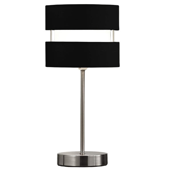 Britalia BRLLAYERBLK/TLWS Satin Nickel Table Desk Lamp with Black Layered Fabric Shade - 38cm Height  This stunning table lamp consists of a satin nickel round metal base and stem supporting...