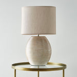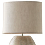 Finish: Gold Textured Scratched Ceramic with Gold Cotton Oval Lampshade