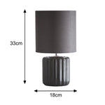 Britalia BRLZOEGREY/TLWS Grey Ribbed Ceramic Vintage Table Lamp with Velvet Drum Shade - 33cm Height  A stunning vintage style table lamp with a grey ceramic vertical ribbed effect base and...