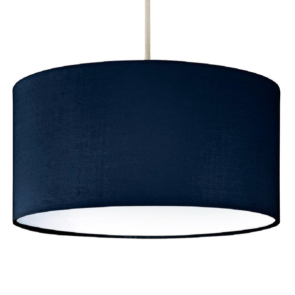 Navy Blue Cotton Modern Easy Fit Round Drum Pendant Shade with Diffuser 30cm