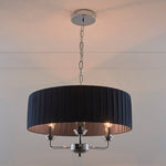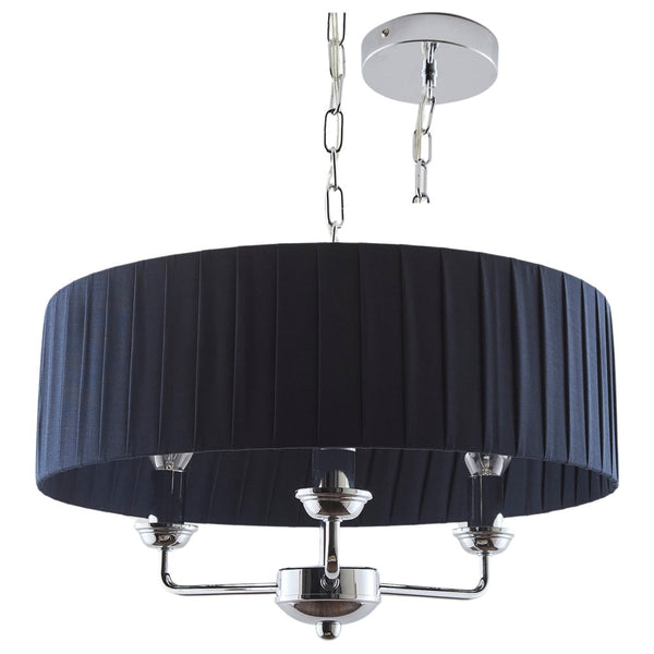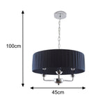 Britalia BRLGIULIANV/3LT Polished Chrome & Navy Blue Pleated Drum Shade 3 Lamp Pendant Ceiling Light - 45cm Diameter  A stunning three lamp polished chrome metalwork pendant ceiling light surrounded with...