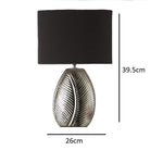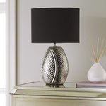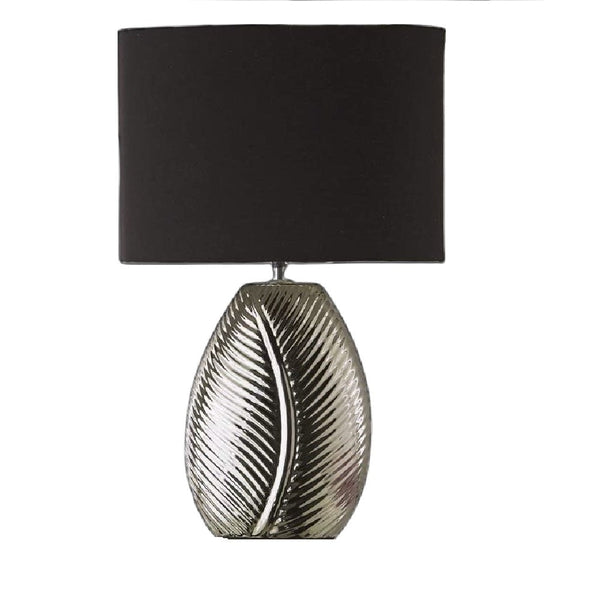 Britalia BRLAMARISIL/TLWS Silver Ceramic Leaf Design Modern Table Lamp with Black Oval Lamp Shade - 39cm Height